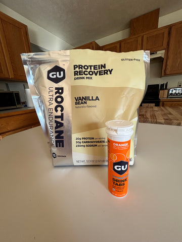 Orange Creamsicle Recovery Drink — Mix one orange flavored GU Hydration tab with 1-2 scoops of Vanilla Bean Roctane Protein Recovery Drink Mix. This is my favorite thing to down right after I train on hard days and easy days alike. Not only is it delicious but this combo replenishes essential salts, carbohydrates, and protein all in one fell swoop, at the time when my body is most depleted.
