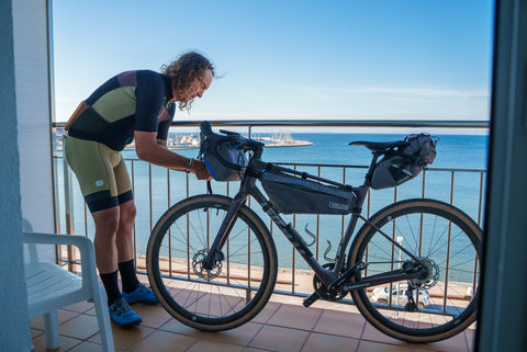 How did I end up in this gorgeous part of the world? Well, in my role as GU Energy Labs’ Elite athlete manager, I get to work with some really amazing humans, one of whom is Jack Thompson, who goes by Jack Ultra Cyclist, a nickname born out of his many herculean two wheeled feats of endurance. We met in 2022 and late last year began scheming this “work” trip together since we both love creating content that inspires folks to get out and explore. A professional ultra-cyclist born in Perth Western Australia, Jack relocated to Girona, Spain in 2019. Referred to in the media as ‘The Most Extreme Cyclist on Earth,’ Jack pushes the boundary of what is humanly possible on a bike, exploring the limits of human physiology both physically and mentally. Jack holds multiple Guinness World Records and Fastest Known Times (FKT’s) around the globe and is an active and passionate advocate for mental health disorders. As just an example, his Space Odyssey project in 2022, which raised over $500,000 for three mental health non-profits, saw him ride 1,000,000 meters of elevation and Everest (climb 29,031 ft) 52 times on 52 different climbs. To say that I was a tad intimidated to spend three days credit card bike packing the hilly Costa Brava with him would be the understatement of the century.